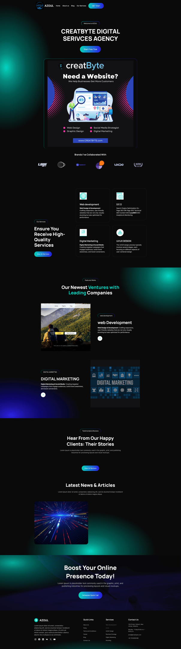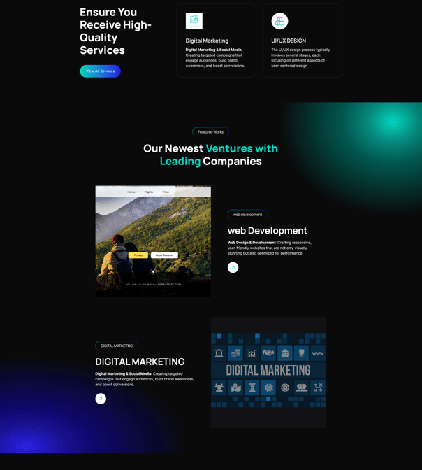 This demo project illustrates our digital agency's expertise in designing and developing modern, responsive websites that meet business goals. Whether it’s delivering a visually stunning portfolio, improving search rankings, or creating user-friendly lead-generation strategies, we are equipped to provide digital solutions that drive results.